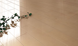 ワックス不要のお手入れが楽な床材です。普段のメンテナンスは簡単な拭き掃除だけでOK。